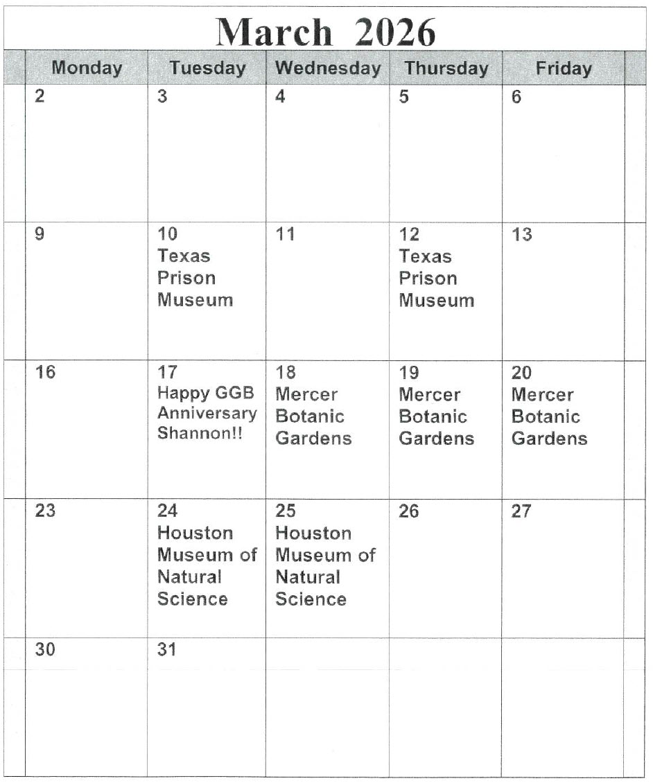 - Sign Up: Packets are provided at the Kevin Brady Community Center to register for upcoming trips.